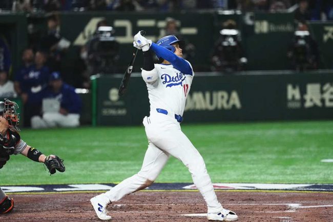 ドジャース・大谷翔平選手が「1番・指名打者」で先発出場。2点リードの3回無死二塁で巨人・戸郷の初球、スライダーを右翼席へ運んだ。打球速度は168・9キロだった。