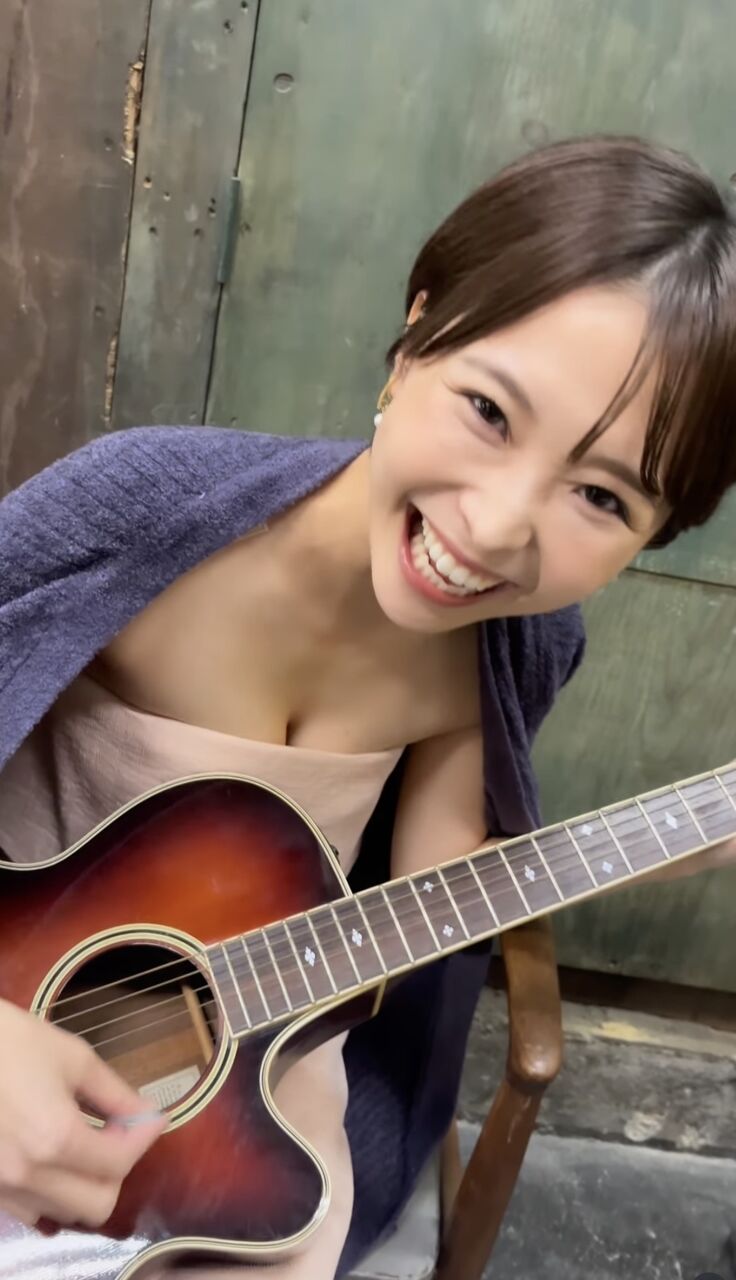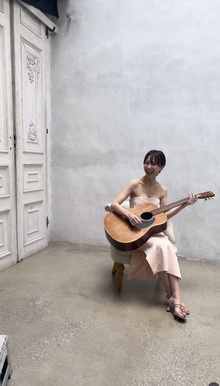 「スタジオにギターがいっぱいあったから、遊んでみた笑笑 持ち方すら分からなかったけど、気分はあいみょんでした」と書き出し、ギターを鳴らす動画をアップ。胸元を大胆に開いたワンピース姿で、あいみょんの代表曲「マリーゴールド」をバックにノリノリだった。